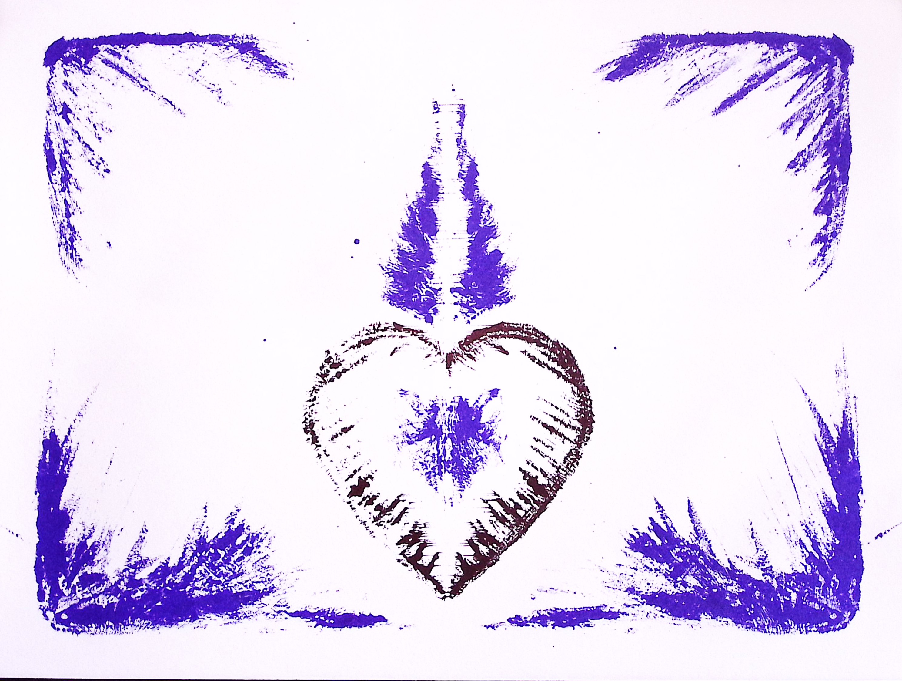 “Jailhouse Print Flaming Heart 2” By Richard Kirkham $25 Jailhouse printing press paint on paper 9×12