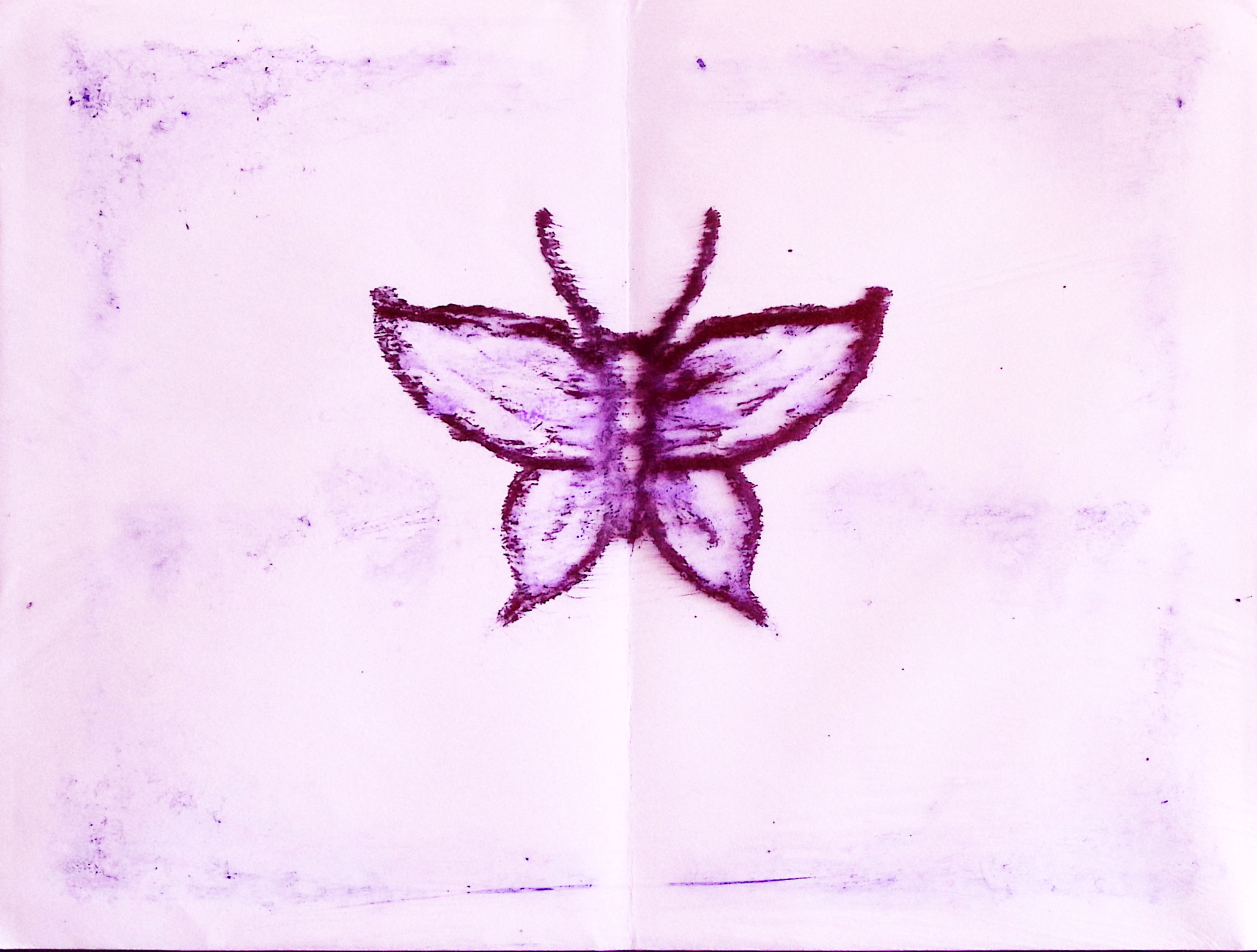 “Jailhouse Print, Butterfly 2” by Richard Kirkham $25 Jailhouse printing press paint on paper 9×12